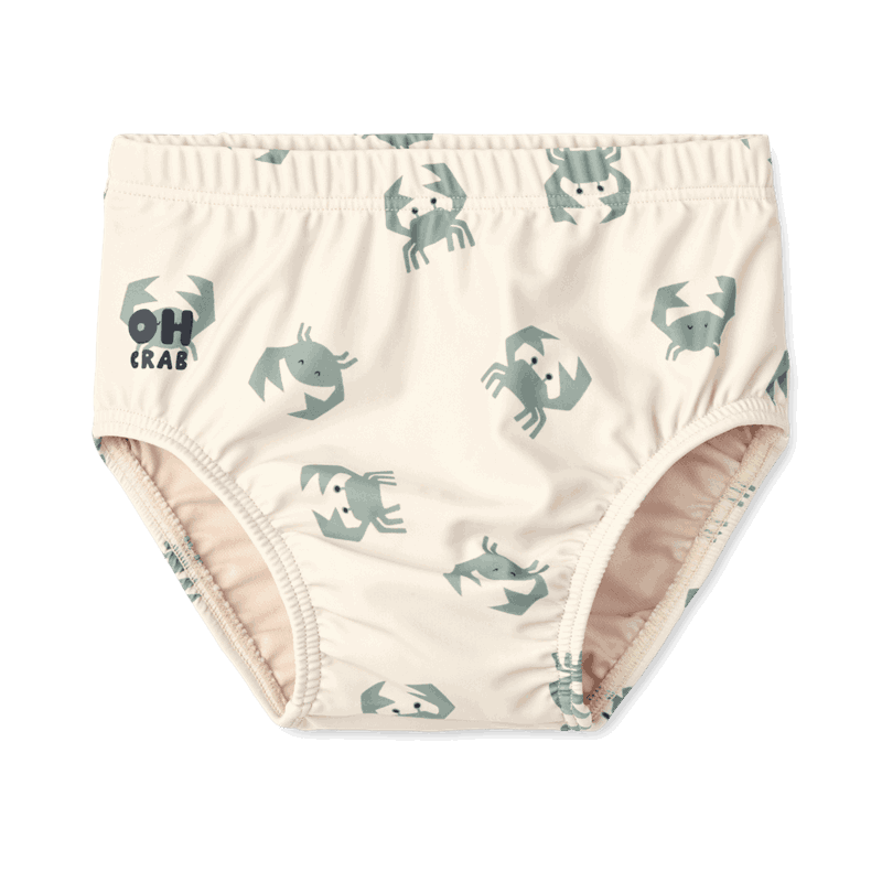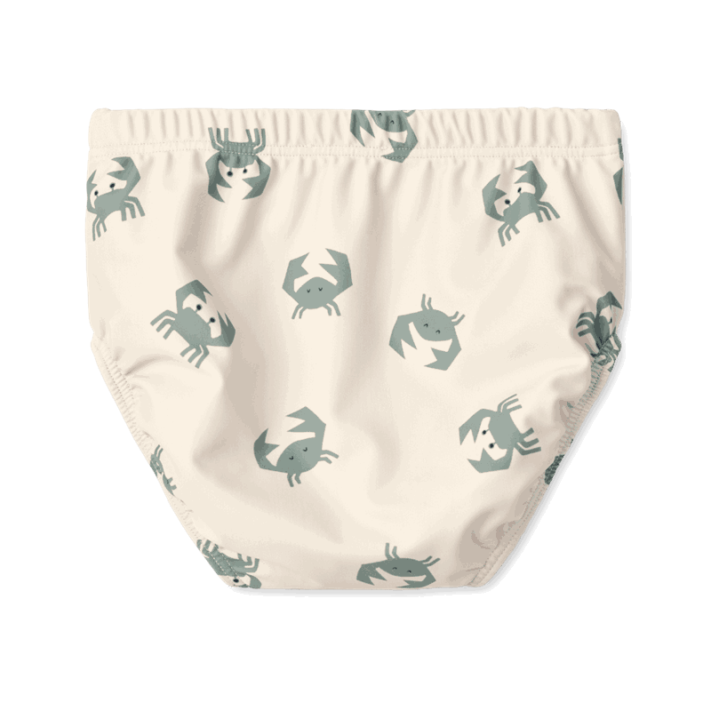 Badebukse til baby med tøft print med krabber. Myk og komfortabel kvalitet. Stretchy materiale med plass til bleie. UV-beskyttelse: faktor 40.