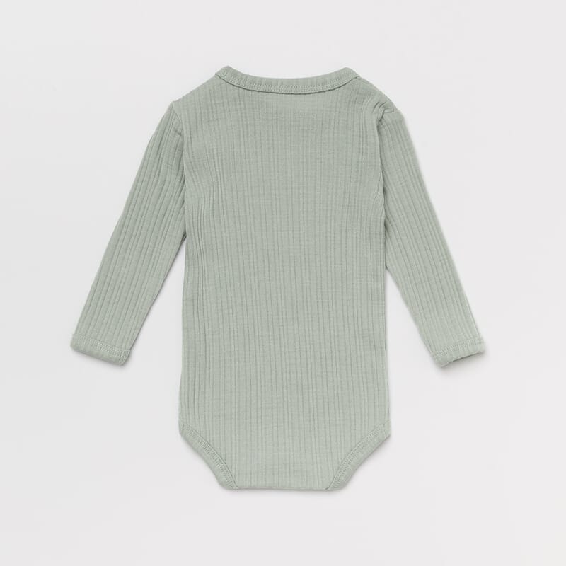 Dette er en tynn og luftig body i den mykeste merinoull, med knapper i bunn, og i siden av kragen for enklere av- og påkledning.