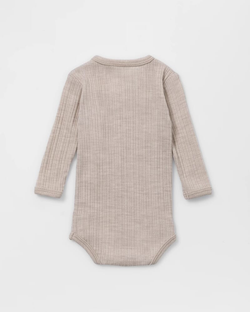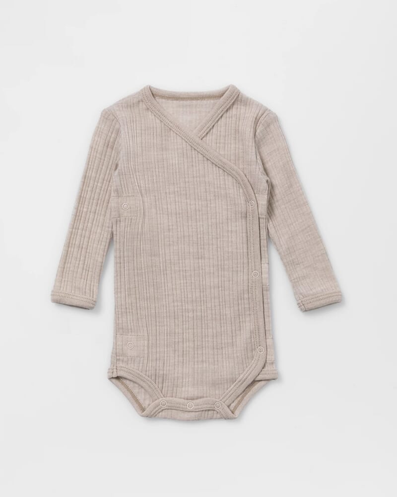 Tynn og luftig babybody til de aller minste, laget i den mykeste merinoull, med skjulte sømmer og dekorative detaljer.