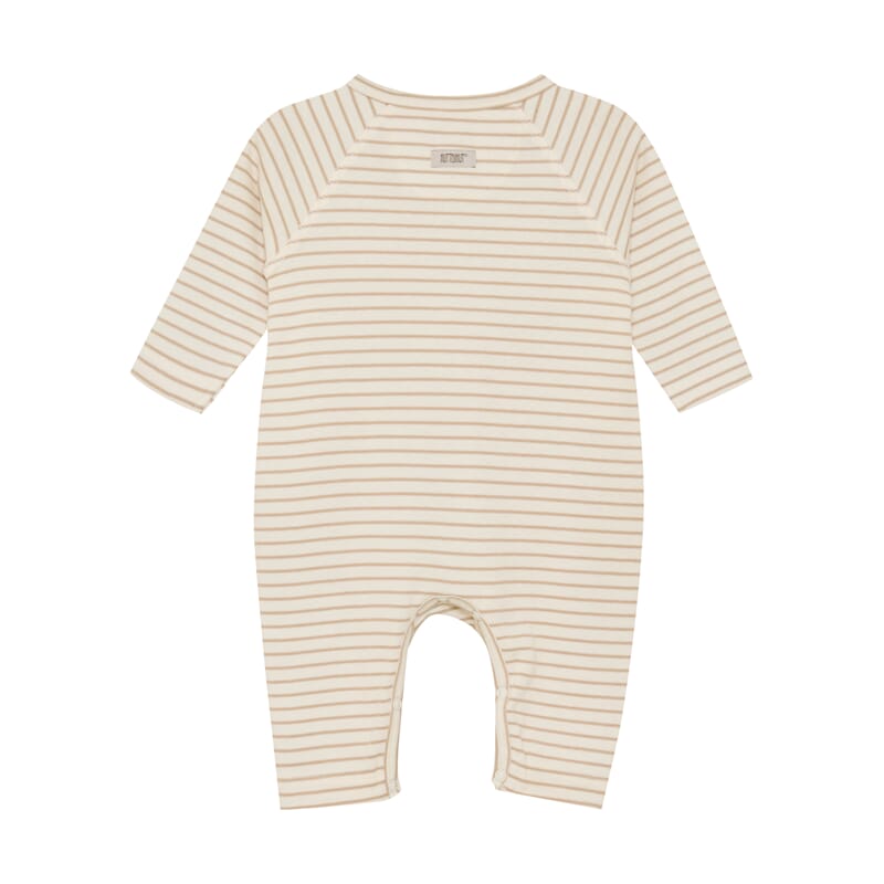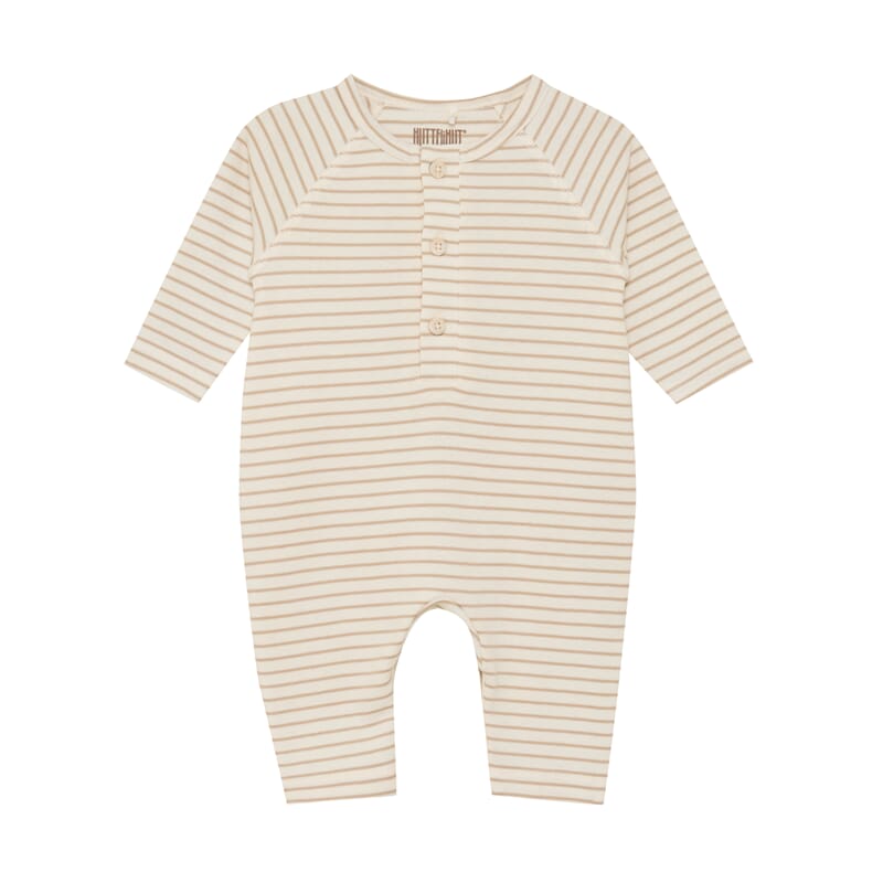 Langermet heldrakt fra Huttelihut i klassiske striper. Deilig myk stretchy bomullskvalitet. Tre knapper i front, knapping mellom beina for lett av- og påkledning.