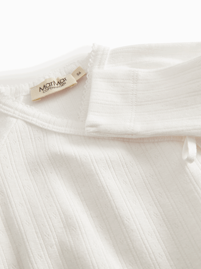 Lekker hvit basic-klassiker fra MarMar Copenhagen i deilig og myk modalkvalitet. Praktisk lukking med omslag. Fint hullmønster.