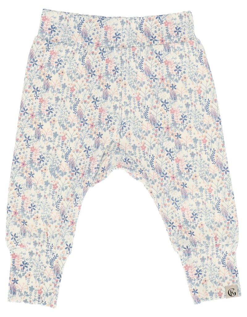 Klassiker fra Gullkorn Design. Deilig myk og stretchy bomullsjersey-kvalitet. God ribb i beina. Fin detalj med treknapper i front. Lekker sammen med Villvette body i samme mønster.
