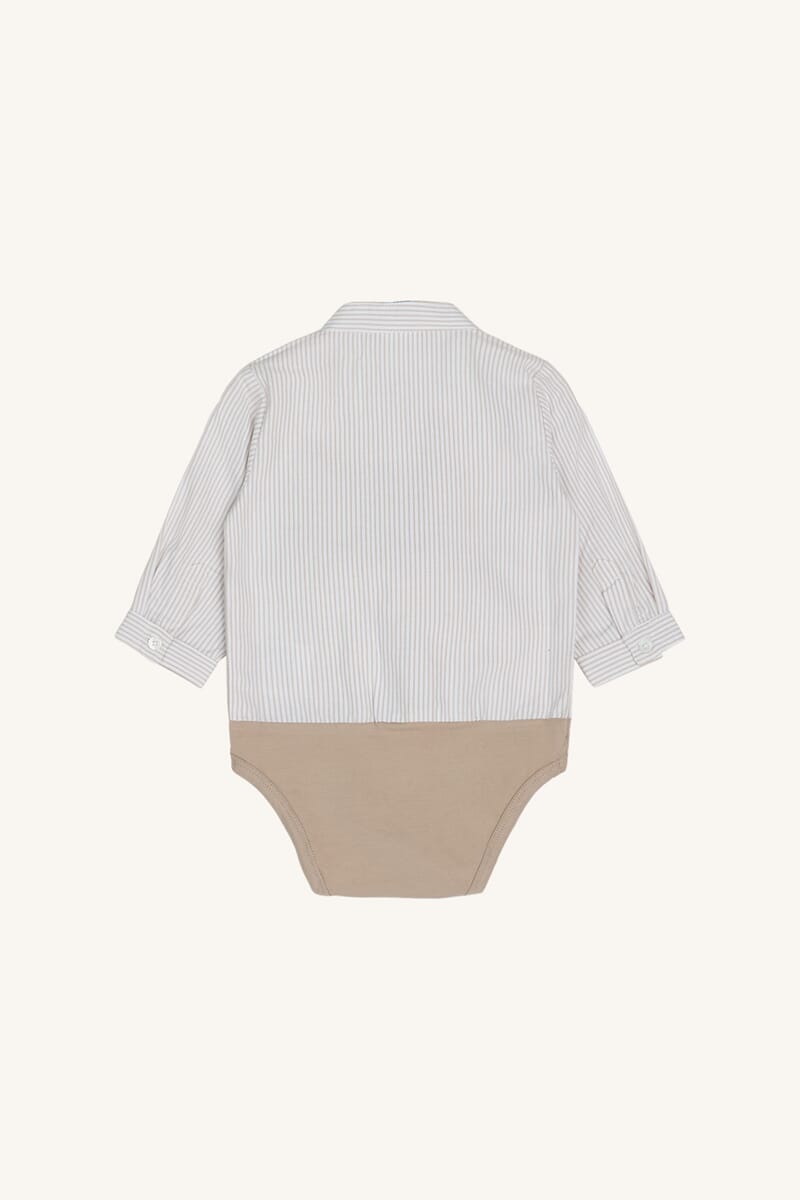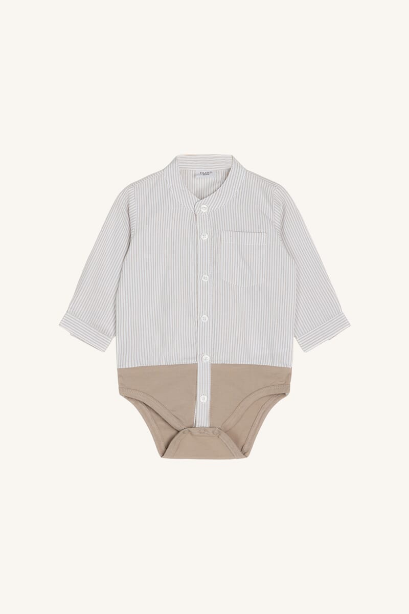 Beige body i lekkert stripemønster i hvitt og beige. Behagelig myk bomullskvalitet.