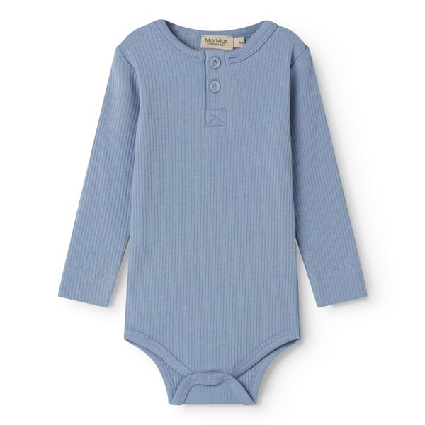 Basic-klassiker fra MarMar Copenhagen i deilig myk modalkvalitet. Dekorativ knappestolpe i front. Lekker rib. Smal modell. Lekker ny blåfarge.