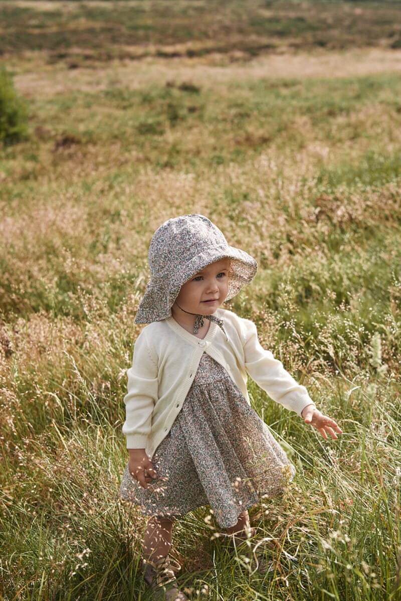 Lekker blomstermotiv. Solbeskyttelse i front og bak. God passform. Snøring. Avbildet sammen med Pinafore kjolen. Str S=1-3M, Str M=6-9M, Str L=12-18M