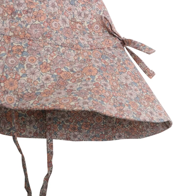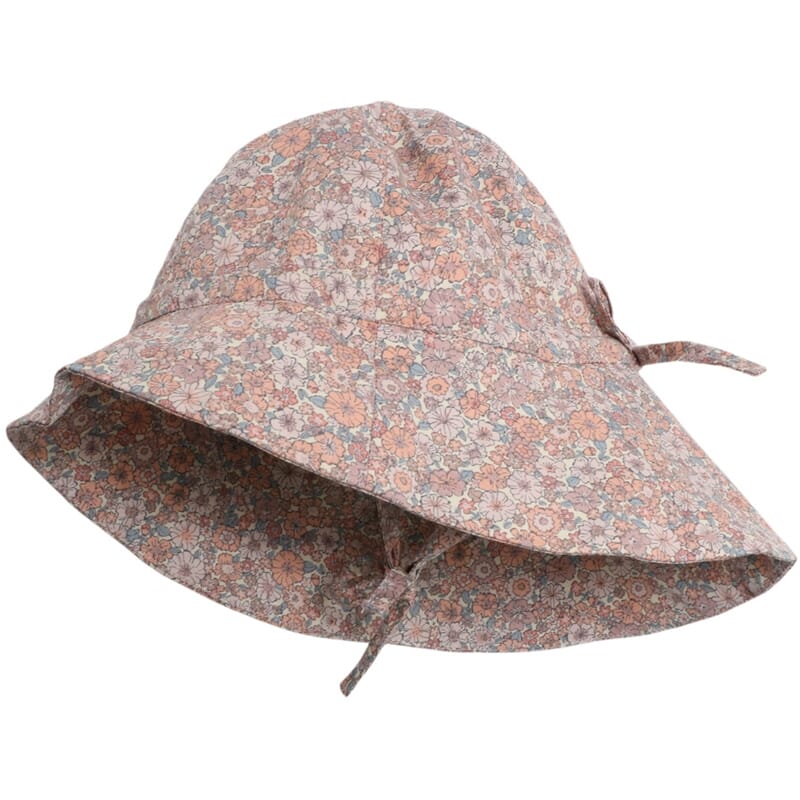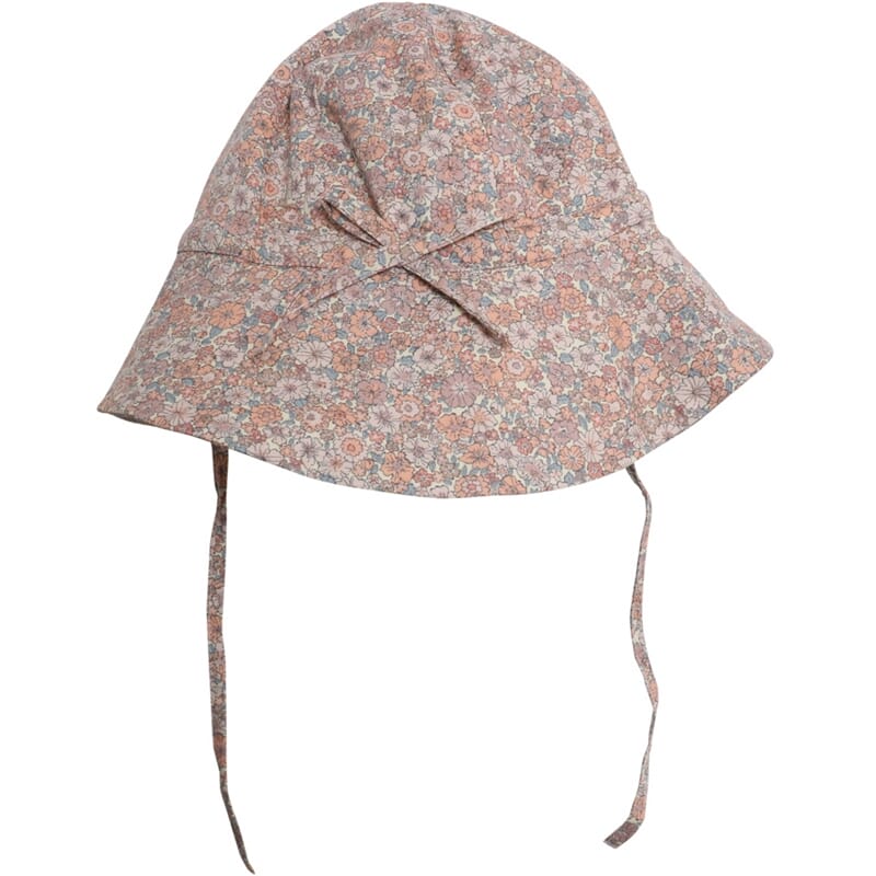 Solhatt i lekker kvalitet. Dus rosa farge med blomsterprint. God brem som skygger for solen foran og bak. God passform. Snøring.