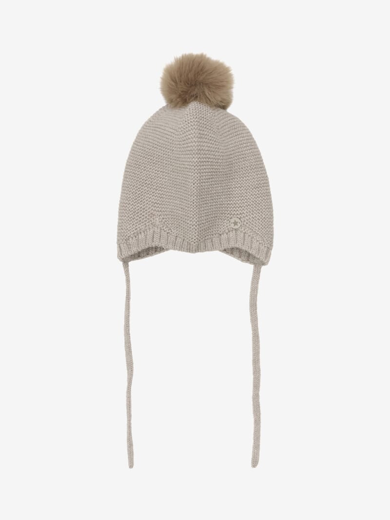 Bonnet Wool Knit w. Pompom camel melange - Huttelihut