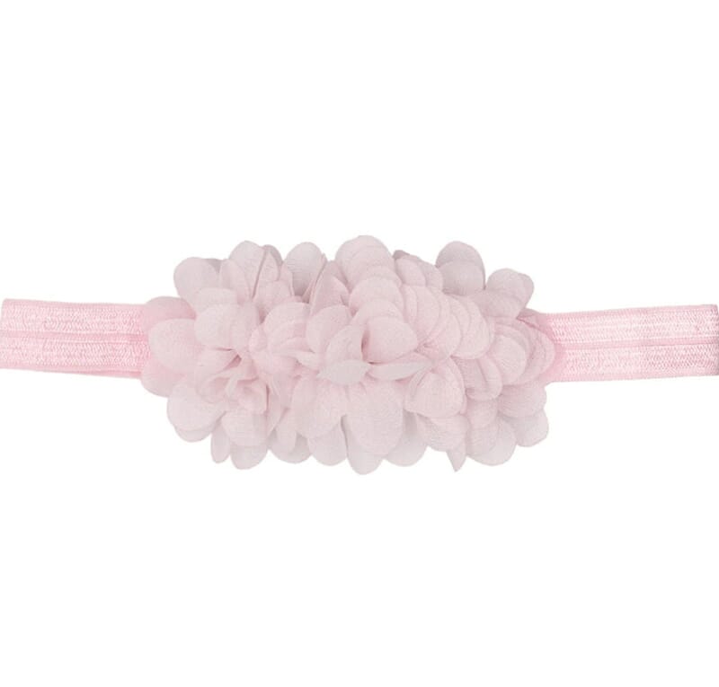 Nydelig hårbånd med blomster til de minste. Strikk som sitter godt på hodet, selv uten hår. Passer fra baby til 0-3 mnd.