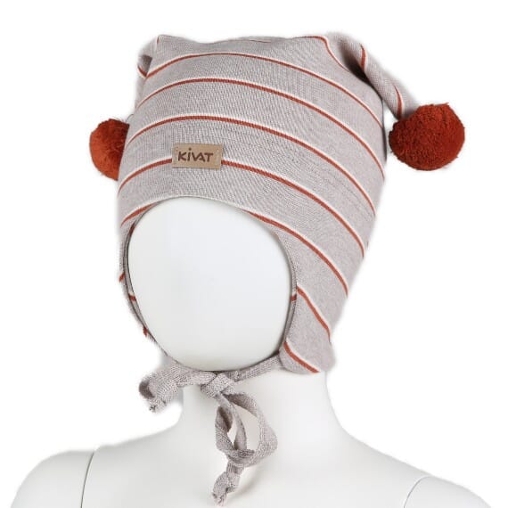 Klassiker fra Kivat i nye lekre beige, rust og offwhite striper. God passform. Snøring under haken. Skinnlapp med Kivat-logo i front. Vindstopper ved ørene.