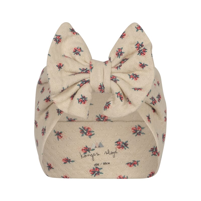 Fin bonett med lekkert print av roser. Behagelig og mykt bomullsmateriale. Elastisk strikk.