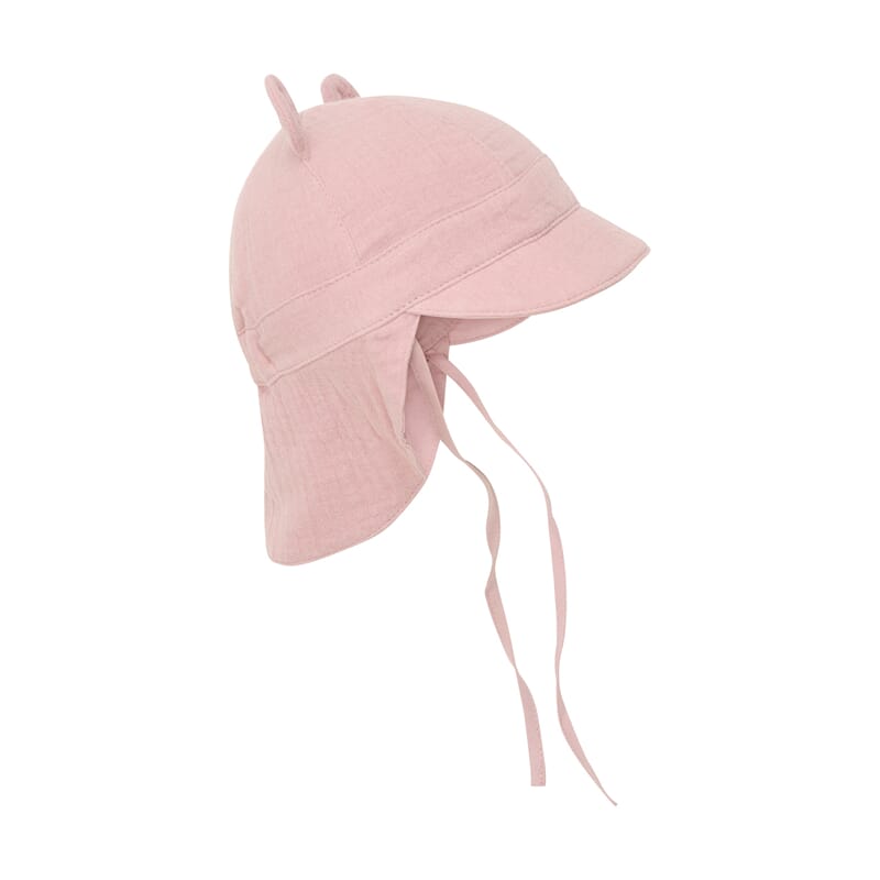 Solhatt for de minste i behagelig og sval muslinkvalitet. God beskyttelse mot solen med bred brem i front og god dekning på sidene og i nakken.