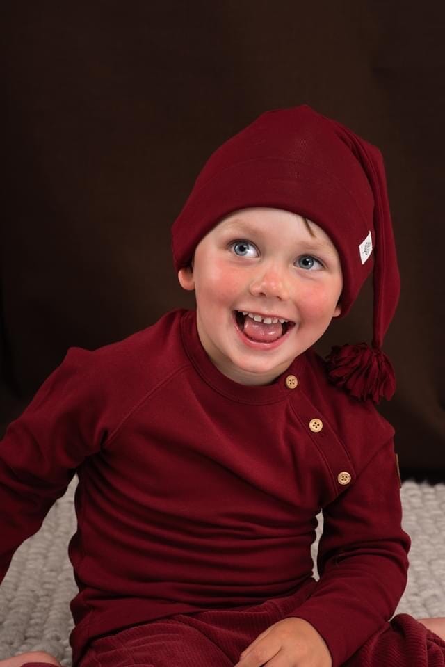 Klassisk lang nisselue i deilig myk og stretchy bomullsjersey-kvalitet.