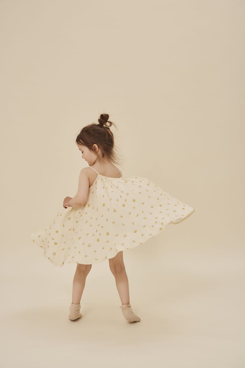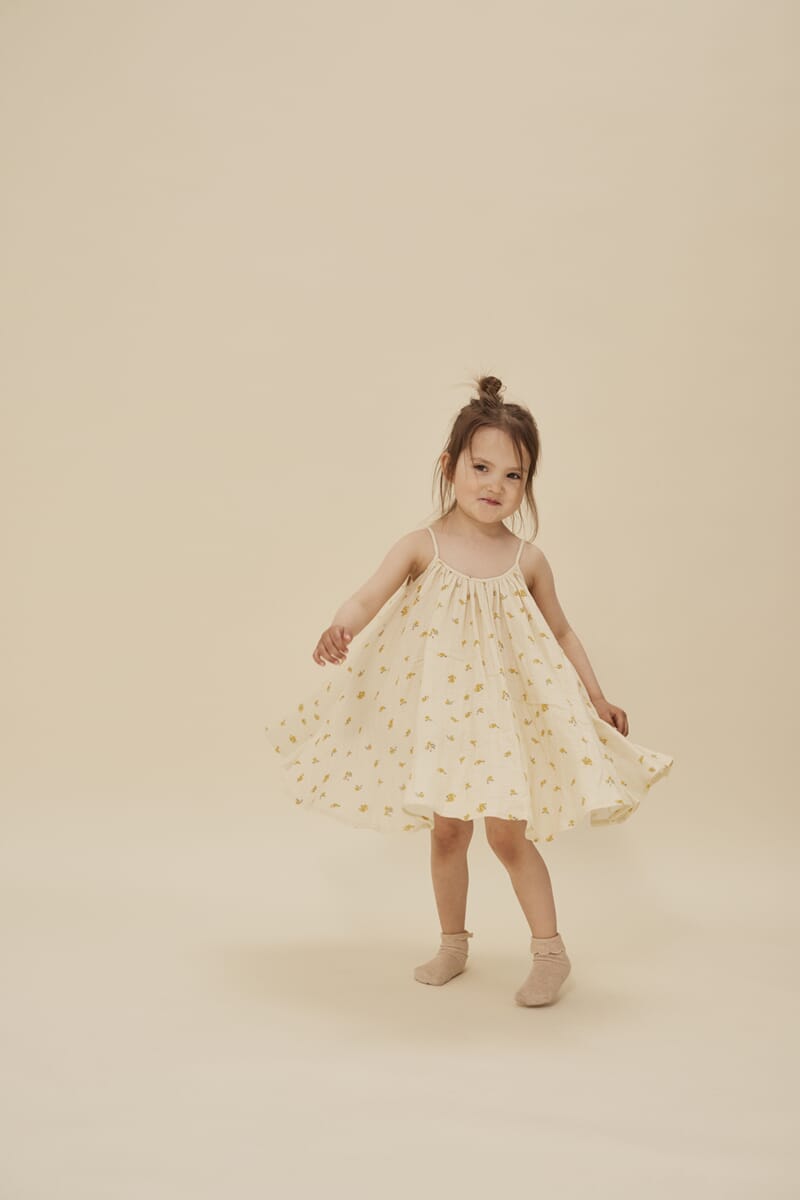 Stroppe-kjole med fint blomsterprint fra Konges Sløjd. Behagelig og mykt bomullsmateriale.