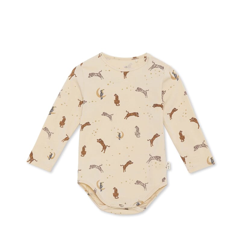 Fin body med lekkert dyreprint. Behagelig og mykt bomullsmateriale. Trykknapper på skulder og mellom beina. Lager et fint sett sammen med Basic Pants i samme mønster.