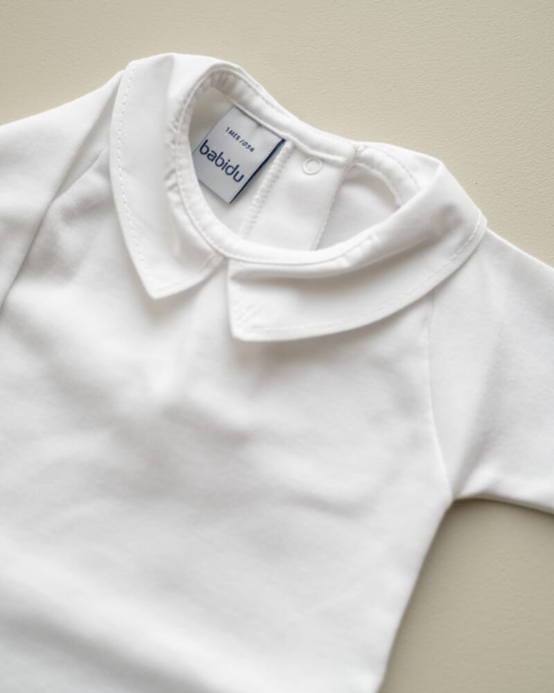 Nydelig kragebody fra Babidu i myk bomullsjersey. Kragen har nydelige detaljer og er like fin under kjoler som under gensere. NB! Dette er et spansk merke som er lite i størrelsen ift norske størrelser. Vi anbefaler å gå opp 1 størrelse.