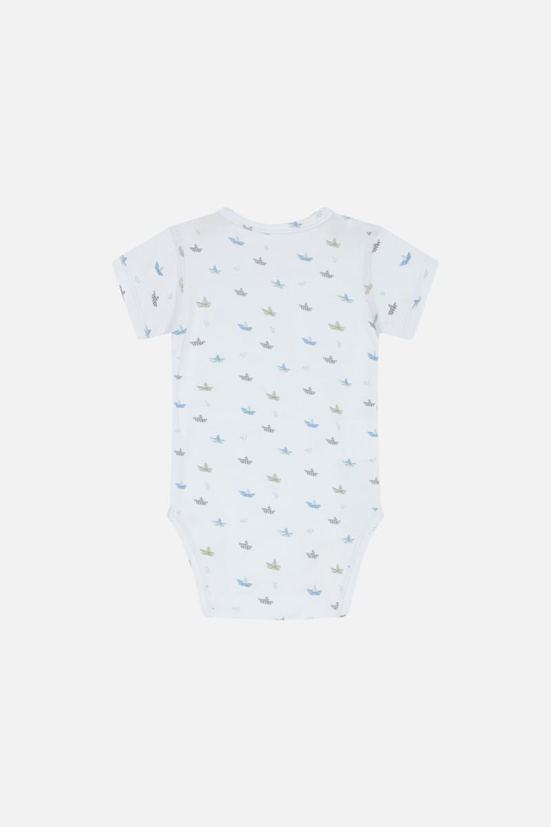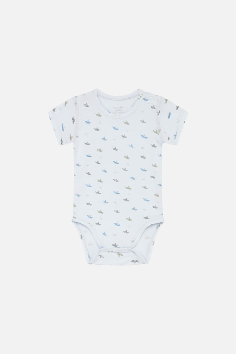 Body i elastisk bambusjersey med fint trykk. Svært myk og behagelig kvalitet. God passform.