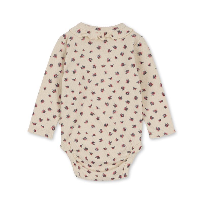 Fin body til de minste med lekkert print av roser. Behagelig og mykt bomullsmateriale. Trykknapper langs siden og mellom ben. Fint sett sammen med Sui Frill pants i samme mønster.