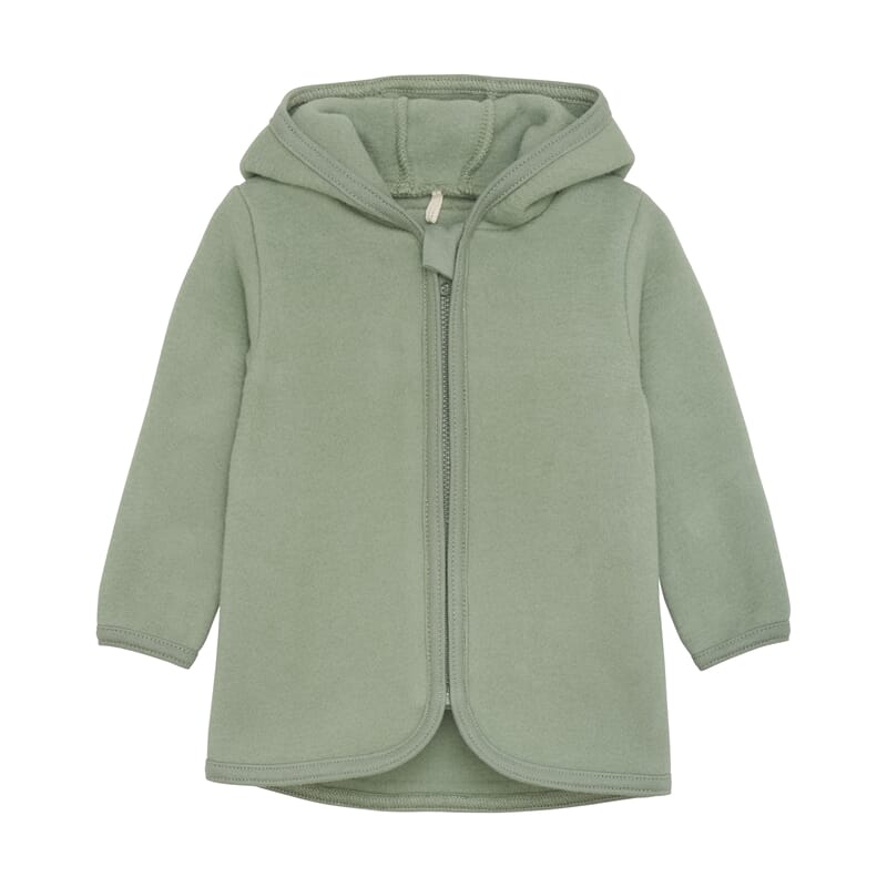 Klassiker fra Huttelihut i deilig mykt bomullskvalitet. Søt hette med ører. Fin lysegrønn farge. Glidelås langs fronten.