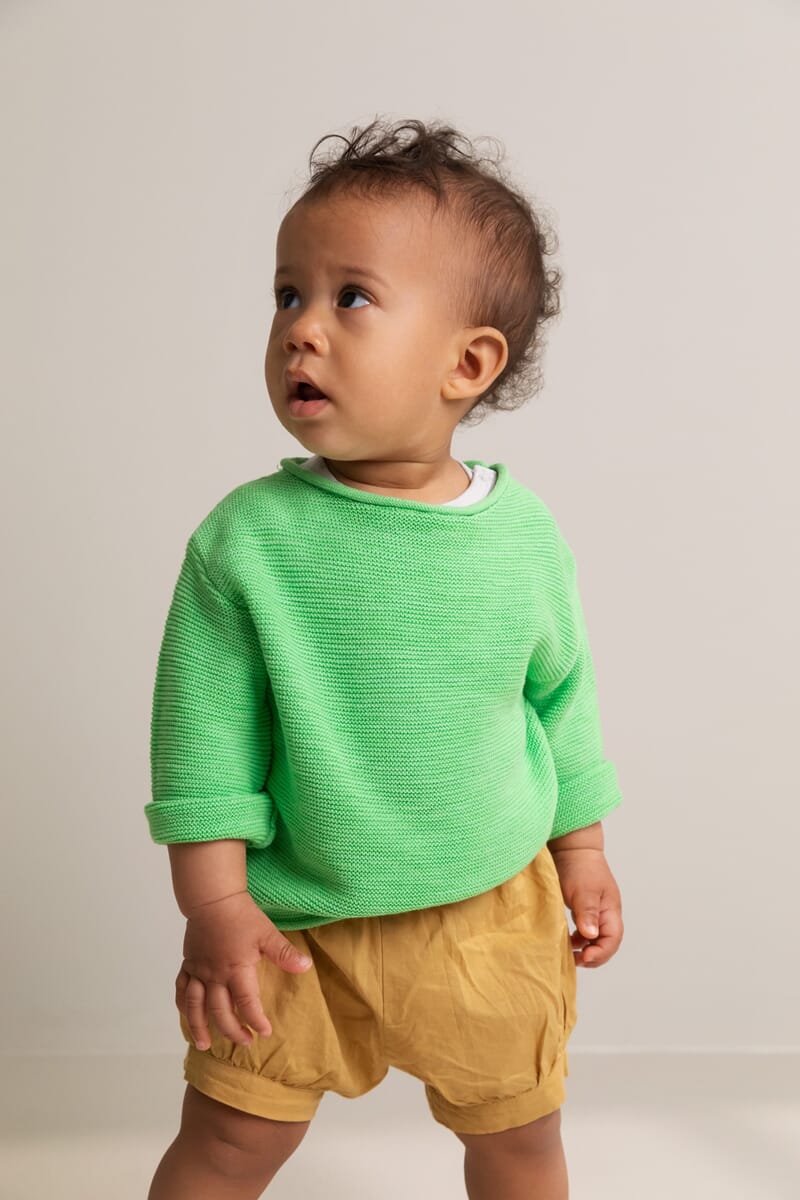 Fin genser til de minste i lekker farge. Myk og behagelig bomullskvalitet. Lekker krage.
