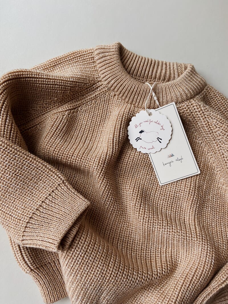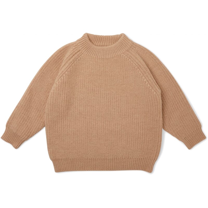 Deilig myk og varm genser i merinoullstrikk. Nydelig beigebrun tone.