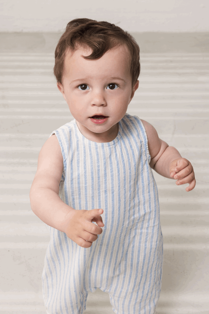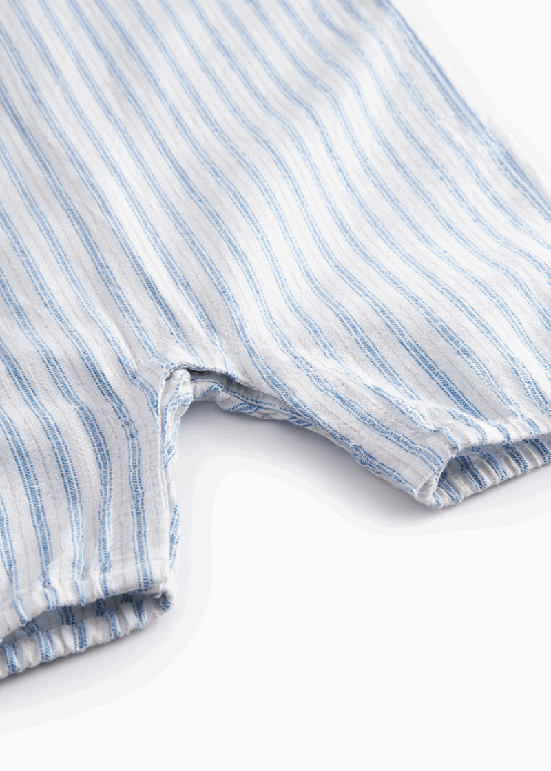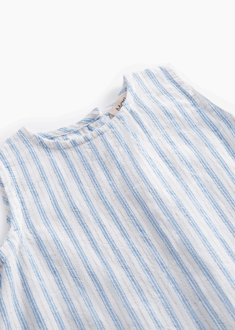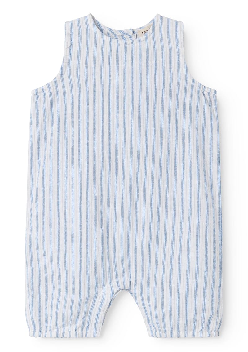 Romper fra MarMar Copenhagen i deilig sval linblanding. Søt og behaglig løs fasong. Lekkert stripemønster i blått og beige.
