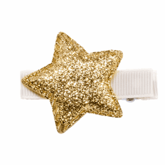 Nydelig liten sløyfespenne med glitterstjerne. Festet på krokospenne med antiskli. Lengde ca 4,5 cm. Fin til baby og små jenter.