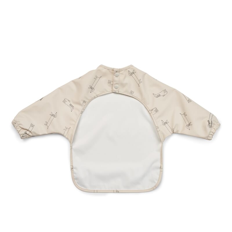Praktisk smekke med armer som beskytter klærne mot søl. Oppsamlingslomme i front. knepping i nakken. Egnet for både spising og maling. Vannavvisende materiale. One-size.