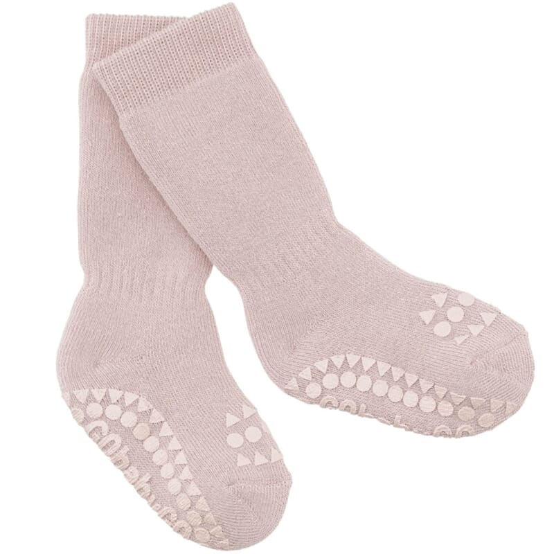 Myke sokker i tykk bomullskvalitet med antiskli på under- og oversiden. Perfekt til når barnet begynner å krabbe og gå. Fin lys rosa farge.