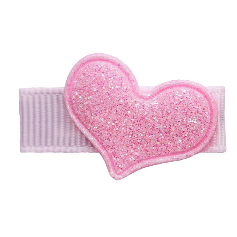Nydelig liten sløyfespenne med glitterhjerte. Spenne med antiskli.