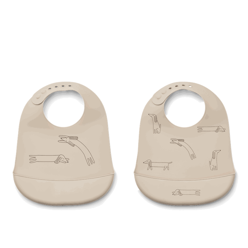 Tilda Printed Bib 2-Pack dog / sandy - Liewood