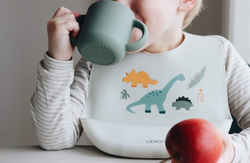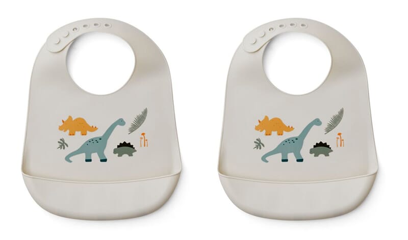 Praktisk lang silikon-smekke som beskytter klærne mot søl. Oppsamlingslomme i front. Lette å tørke av og kan vaskes i oppvaskmaskin. L: 29 cm, B: 22 cm. Søt dinosaur-print.