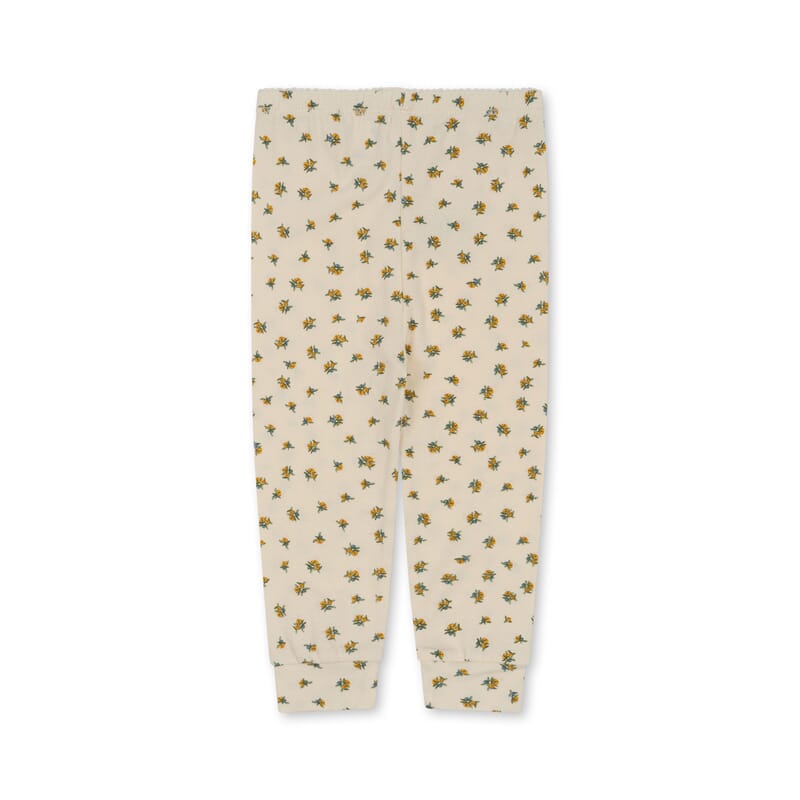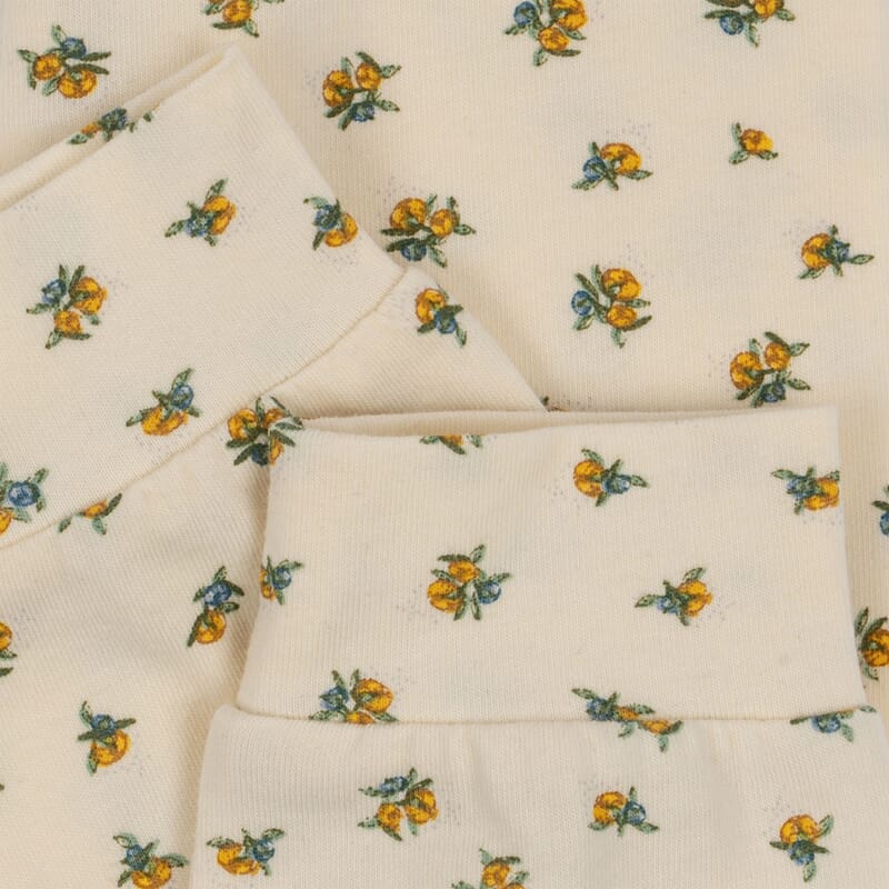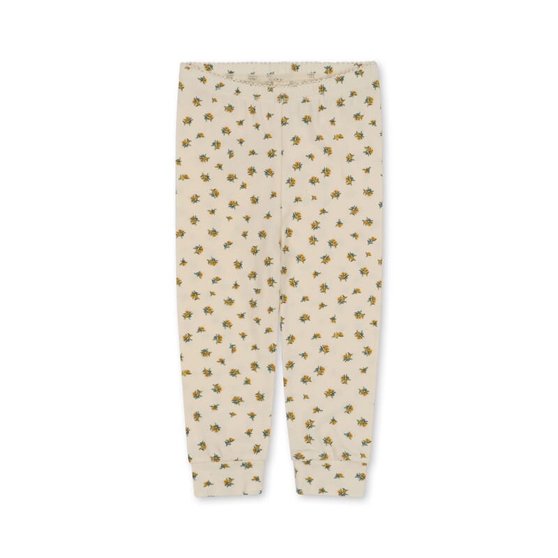 Fin babybukse med lekkert blomsterprint. Behagelig og mykt bomullsmateriale. Strikk i livet og i beina. Fint sett sammen med Basic ls body/basic newborn body i samme mønster.