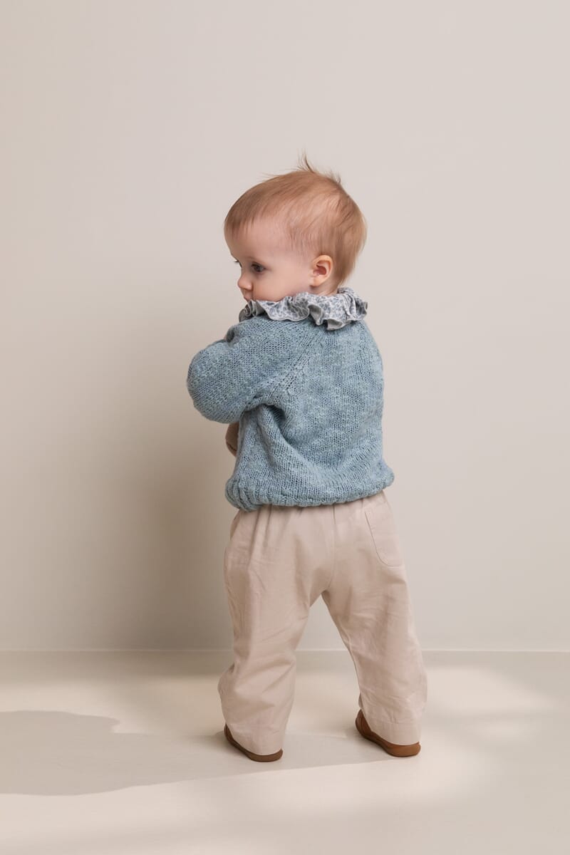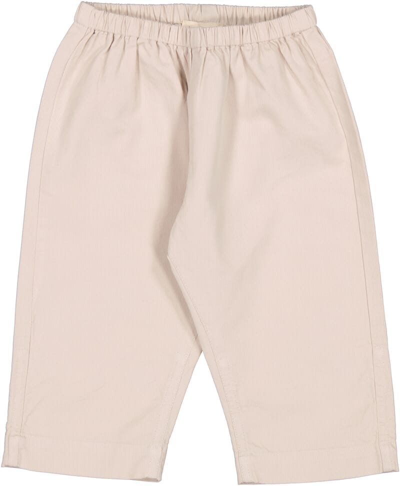 Nydelig bukse til baby i lekker og behaglig tynn cordkvalitet. Fin passform. Lekker farge. Behagelig strikk i livet og rette ben.