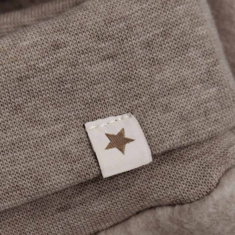 Deilig myk bomullsfleece-kvalitet. Elastisk i liv og ben for å sikre god passform. Nydelig brunfarge. Liten stjernelogo i front.