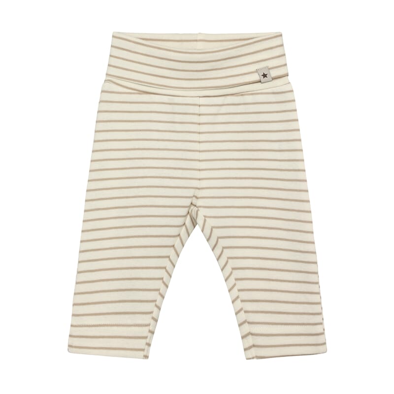 Behagelig bukse fra Huttelihut i klassiske striper. Deilig myk stretchy bomullskvalitet. Bred ribbekant i midjen som kan brettes ned. Lekker sammen med matchende body.