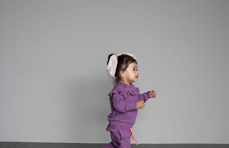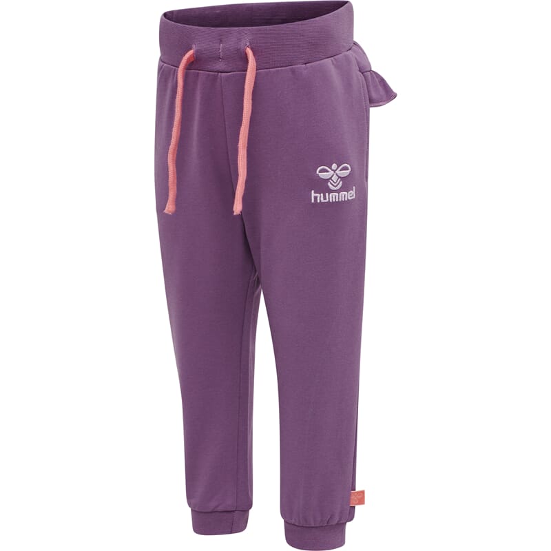 Myk og behagelig i komfortabel passform. Justerbar midje med snøring. Fin lillafarge med rosa detaljer og søte rysjer på rumpen. Fint sett med Ven sweatshirt.