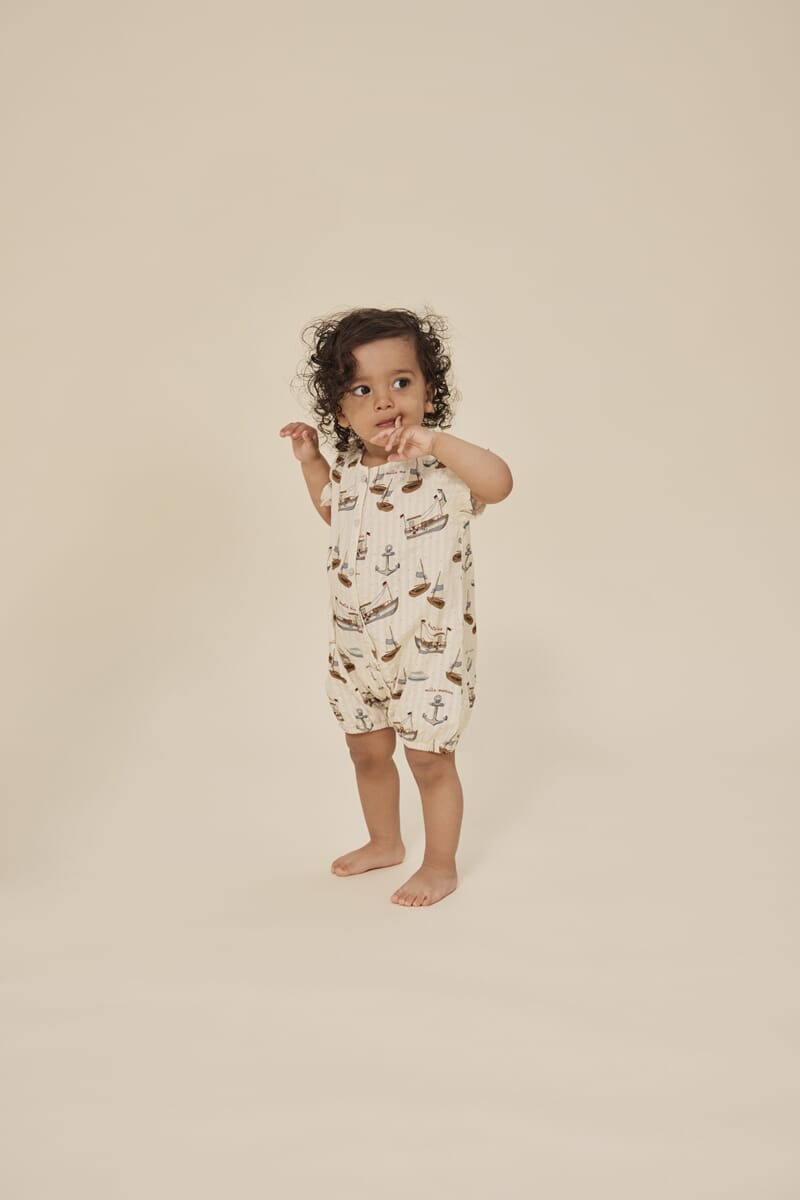 Fin romper med lekkert print av båter. Behagelig og mykt bomullsmateriale. Dekorative knapper langs fronten.