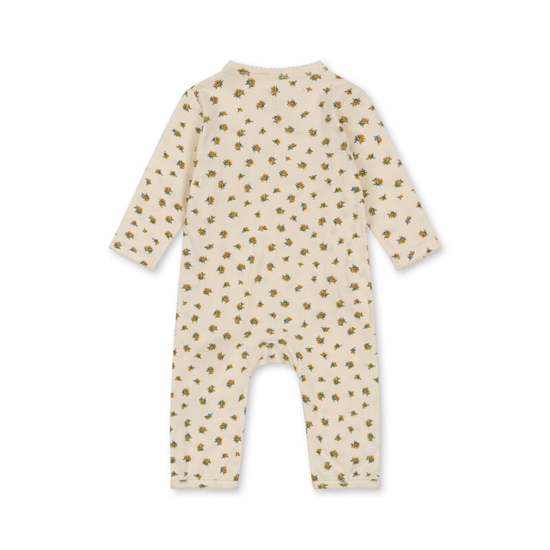 Fin onesie med lekkert blomsterprint. Behagelig og mykt bomullsmateriale. Trykknapper langs siden.