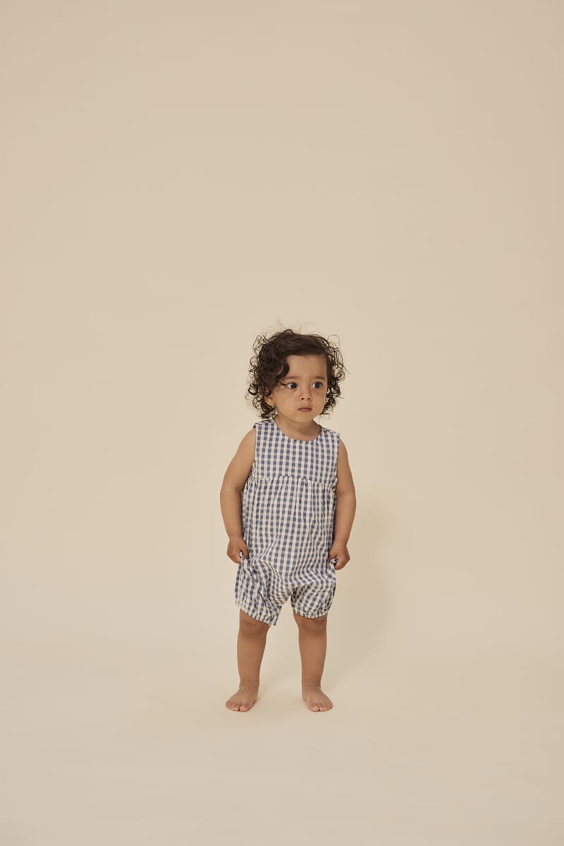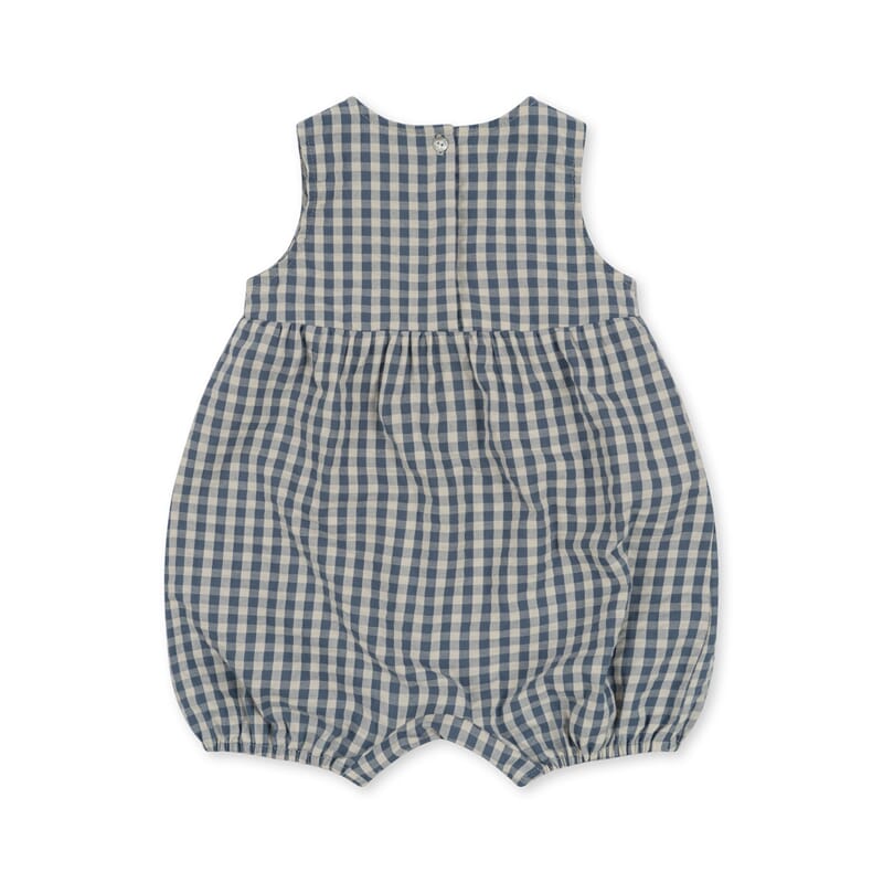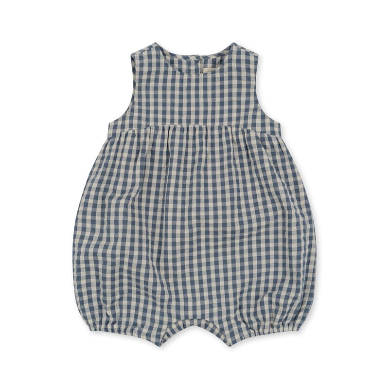 Romer med lekkert rutemønster. Behagelig og mykt bomullsmateriale. Knapp i nakken og mellom ben.