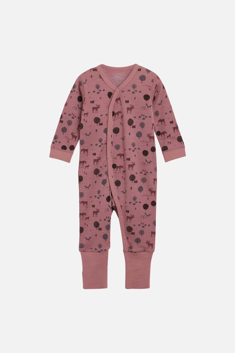 Manu Heldrakt ull/bambus skogsdyr mauve - Hust & Claire