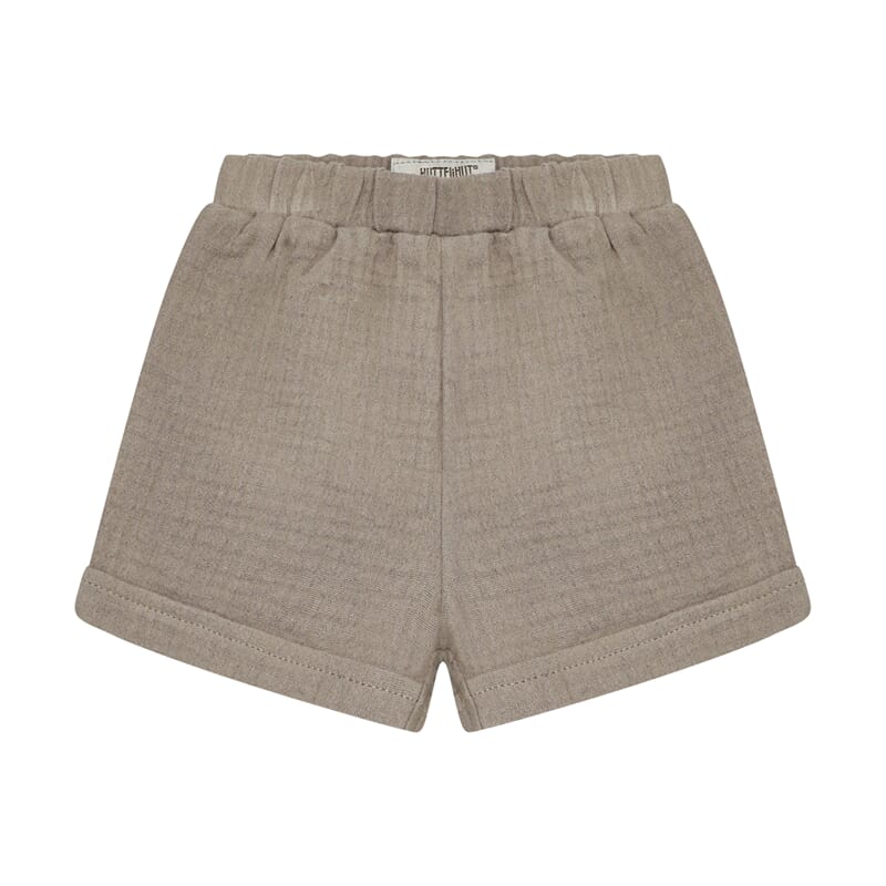 Shorts fra Huttelihut i behagelig muslin stoff. Komfortabel passform. Lekker brunfarge. Elastisitet i livet og fin brettet kant.