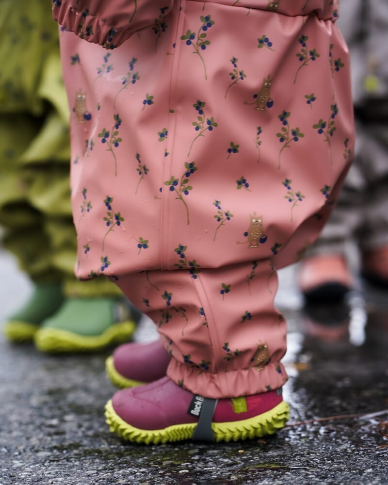 Klassisk modell fra Kattnakken fra ny kolleksjonen "Tolvmeterskogen". Solid regndress med lett fôr av vatt. Inneholder omtrent halvparten av fôret sammenlignet med vinterdressen. Myk PU-kvalitet og passform tilpasset de minste. Solide fotstrikker, reflekser på armer og ben, sveisede sømmer og avtagbar og regulerbar hette. Vindtett, vannsøyle på 10.000 mm.