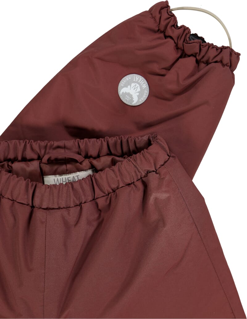 Elastisk midje. Glidelås i front. Tapede sømmer, 10.000 mm vannsøyle, pusteevne 10.000 g/m2/24h. Fin sammen med jakke fra Wheat i samme farge.