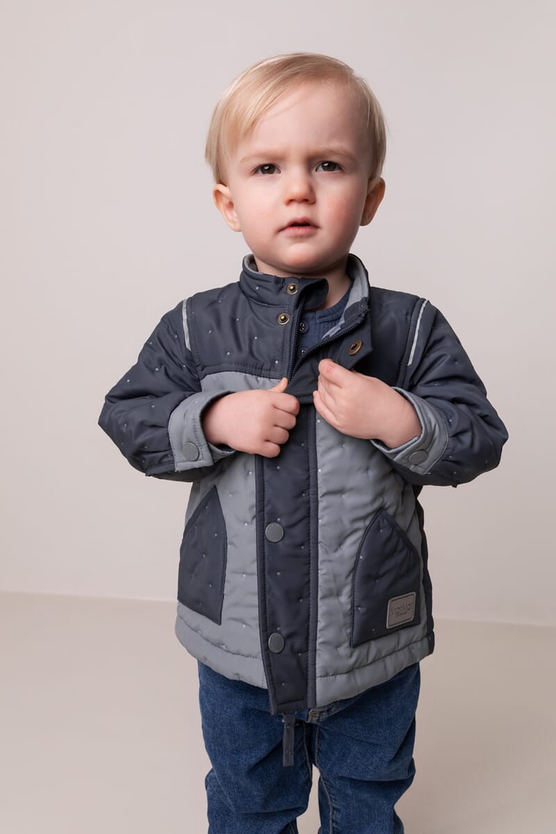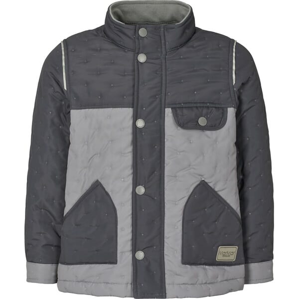 Lekker thermojakke i fin fargekombinasjon. Funker like bra både som mellomlag og ytterjakke. To sidelommer og ne brystlomme foran. Lukkes med glidelås og trykknapper.