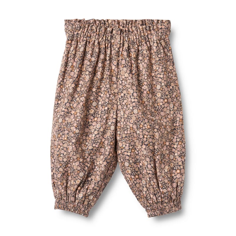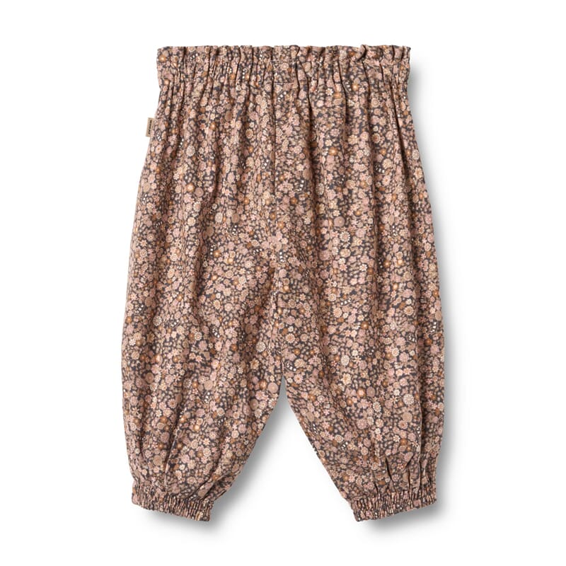 Bukse i behagelig og mykt materiale med fôr. Lekkert blomstermønster og strikk i livet. Se egen vare for større størrelser.