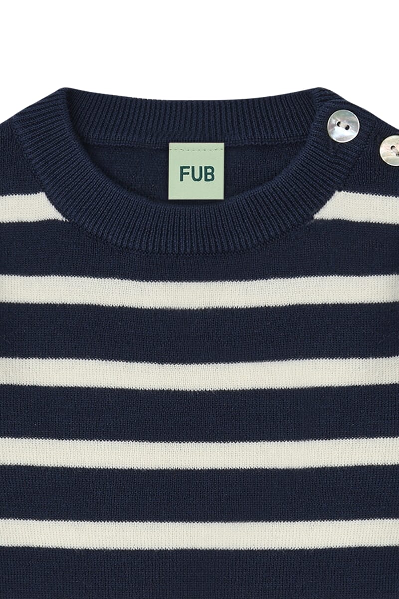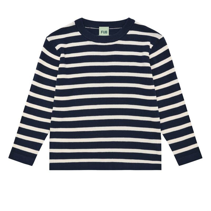 Klassiker fra FUB. Fin langermet genser med klassiske mørkeblå striper. Myk og behagelig bomullskvalitet, løs passform.