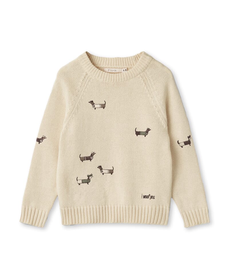 Klassiker fra Fliink i nydelig nytt design. Lekker beigefarge med søte små hunder. Mykt og behagelig bomullstrikk.