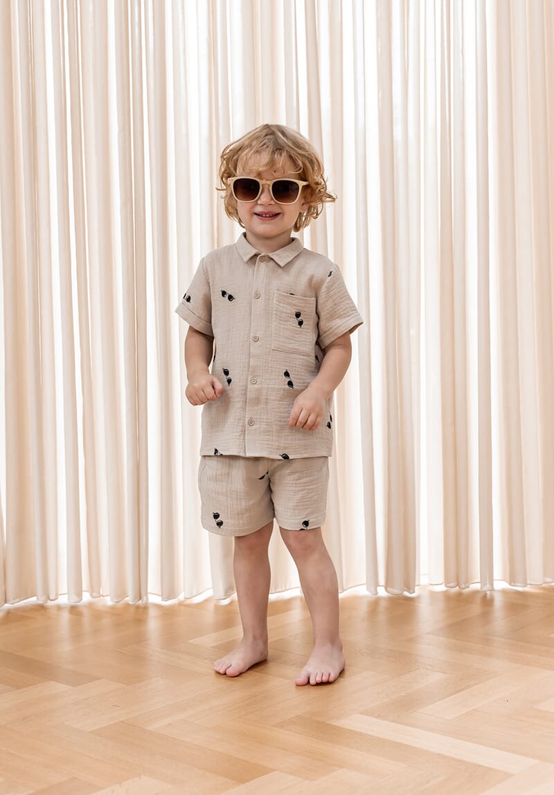 Skjorte i fantastisk myk og behagelig bomullskvalitet. Stilig print og og knapper i front. Fint sett sammen med Hello shorts i samme farge.
