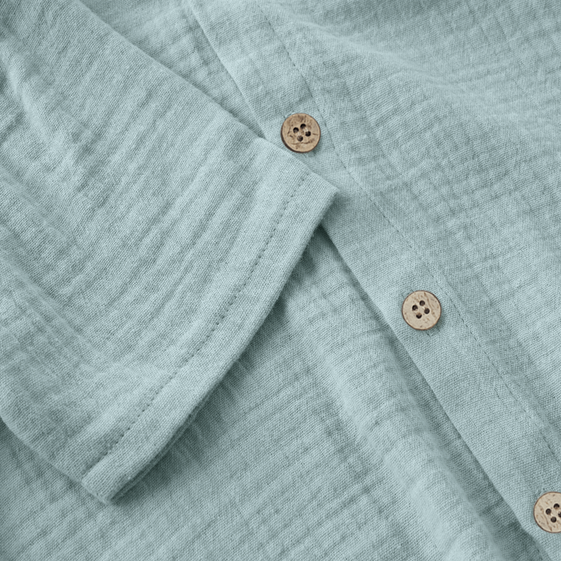 Skjorte fra Huttelihut i behagelig svalende muslin stoff. Komfortabel passform. Fin sjøgrønn farge. Elastisitet og knyting i livet.