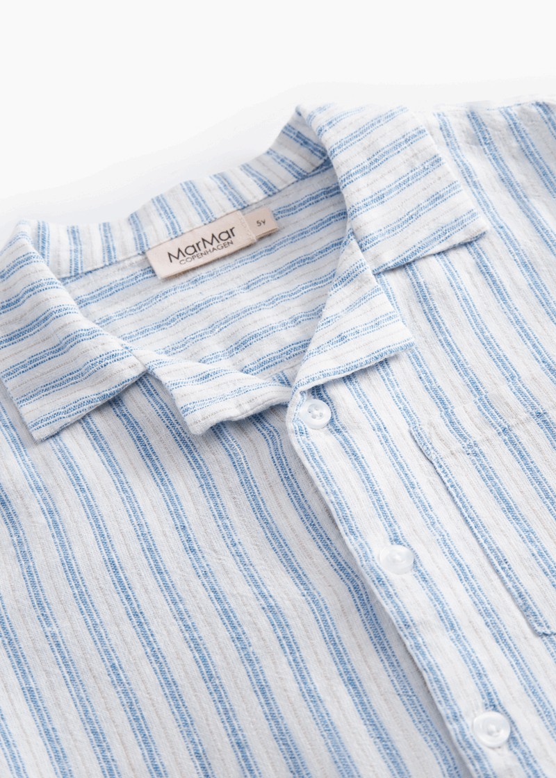 Skjorte fra MarMar Copenhagen i deilig sval linblanding. Løs og behaglig fasong. Lekkert stripemønster i blått og beige.